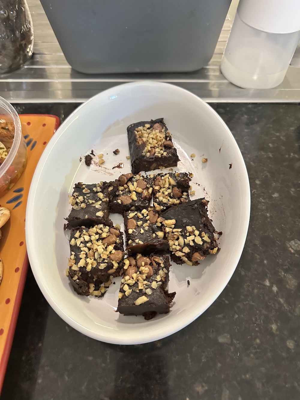 Update: I bought some dark chocolate in the baking section of Coles supermarket and put chunks in the batter without mixing too much. The finish? A brownie with melted chocolate inside.