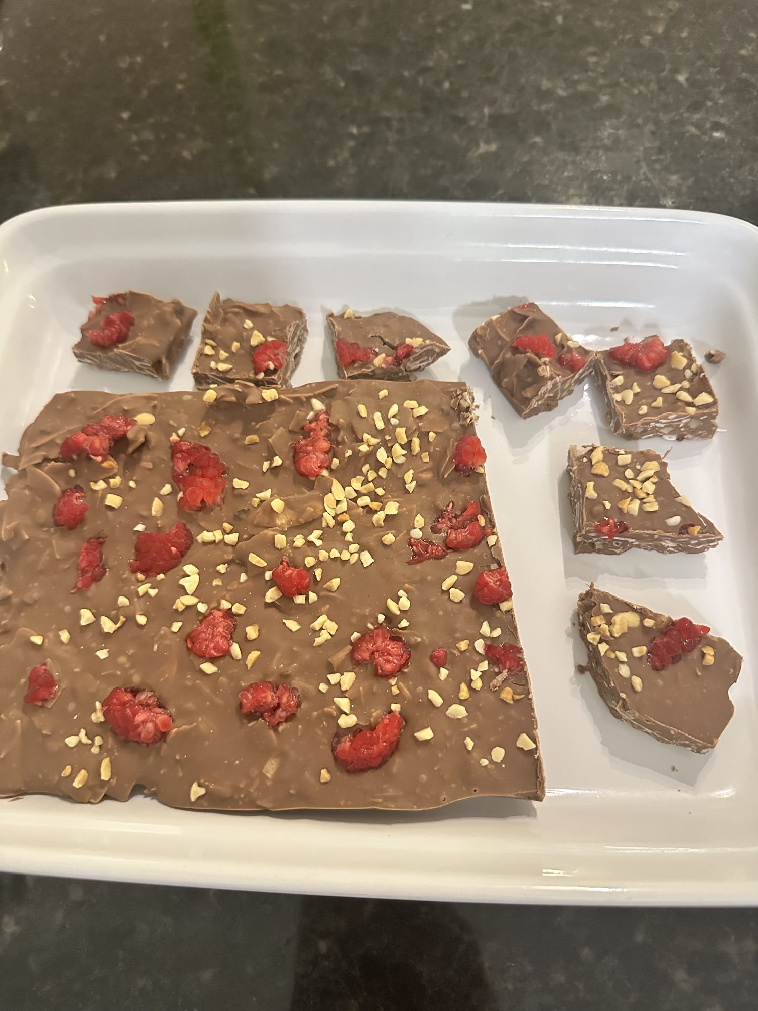- Add the Fresh Touch: Quickly sprinkle fresh raspberries over the chocolate before it hardens. Then, top it off with extra crushed walnuts and a generous dusting of shredded coconut. The contrast of the fresh berries against the rich chocolate is just the right touch!