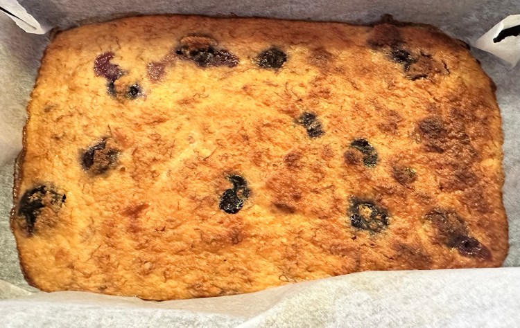 - Stir in the almond meal and gently fold through the blueberries.