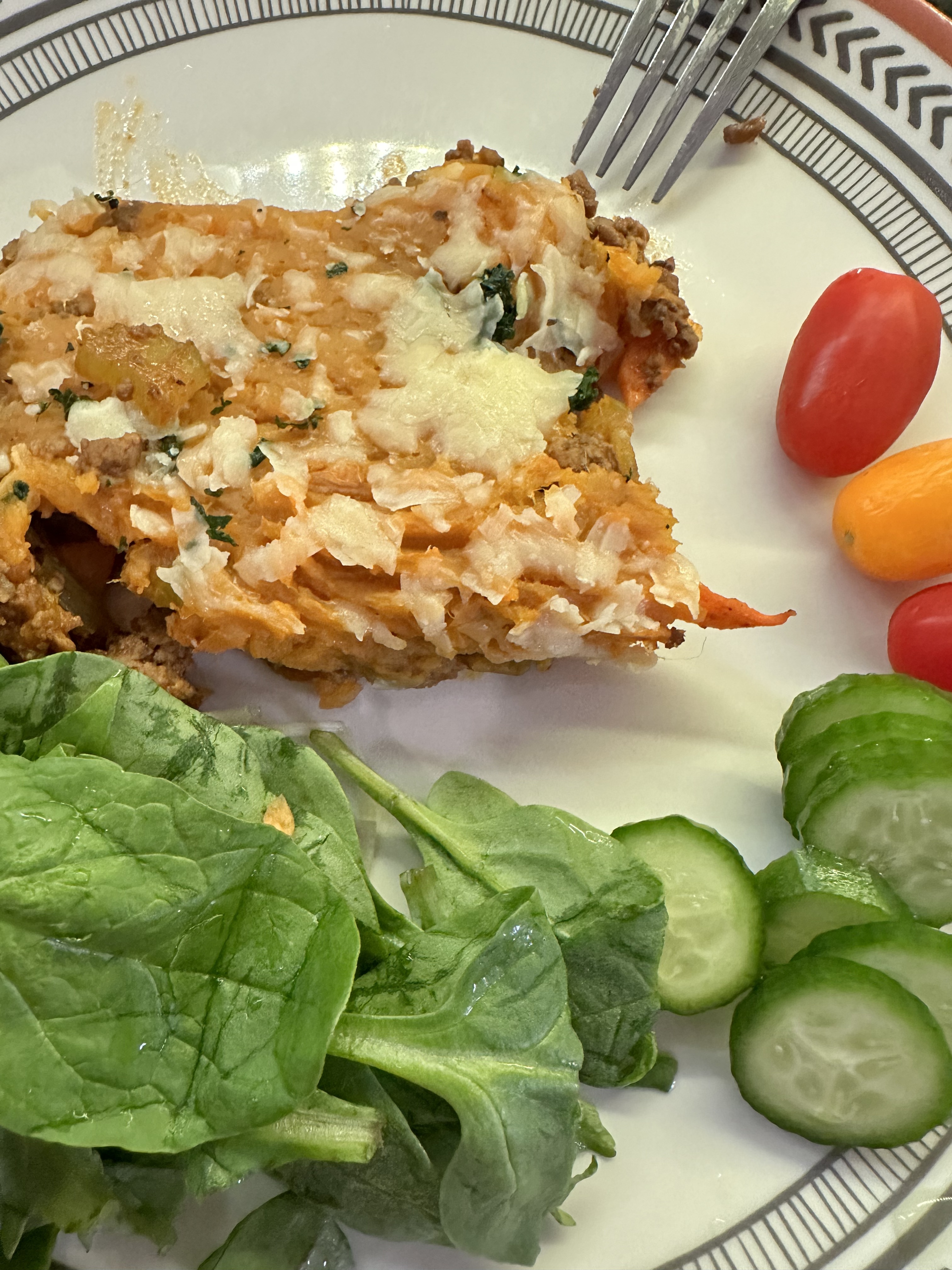 - For a more traditional presentation, layer the beef and vegetable mixture, followed by additional vegetables if desired, and then spread the sweet potato mash on top as you would with lasagna sheets.