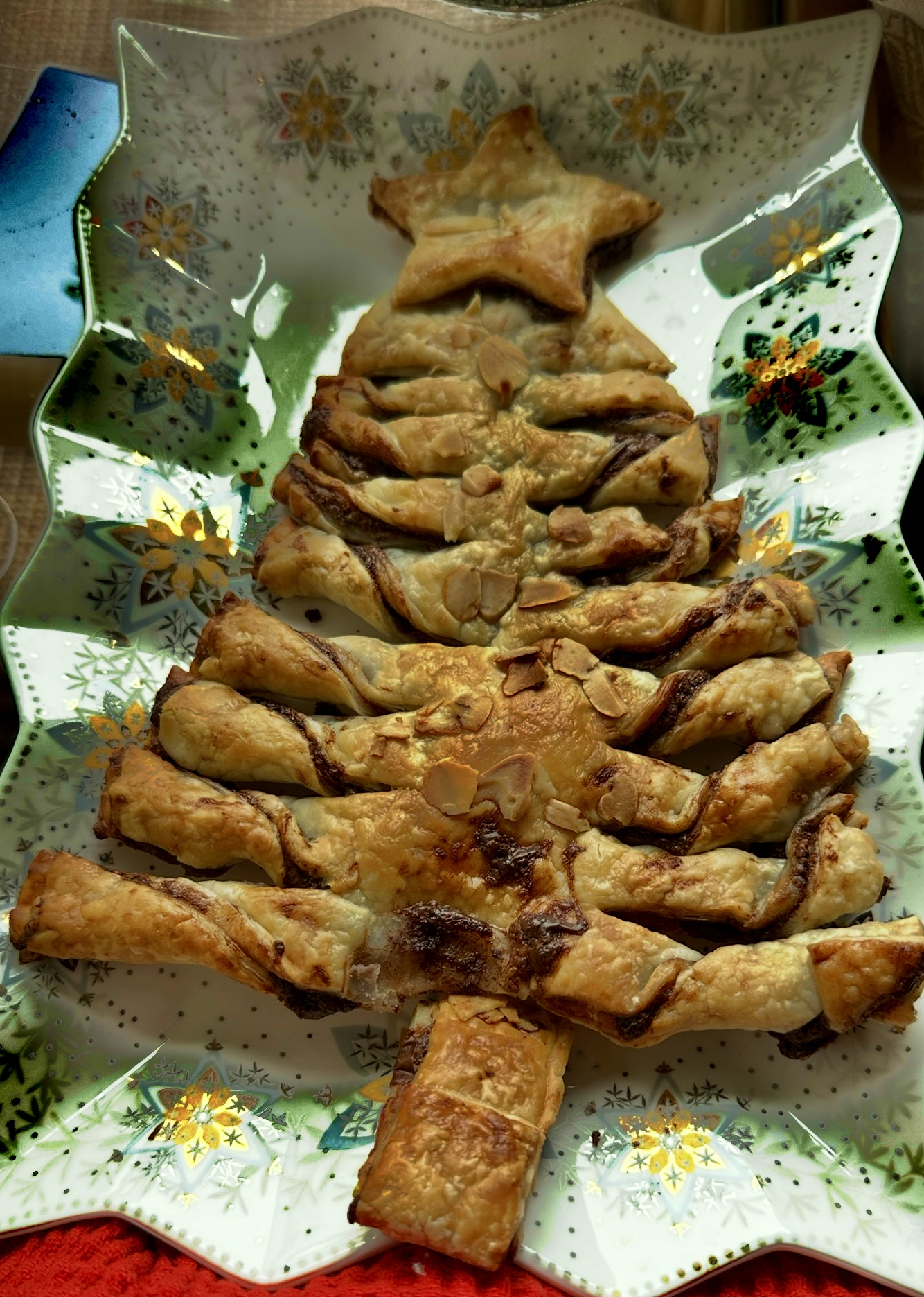 - Roll out the puff pastry and use Christmas cookie cutters to create fun shapes, or simply cut them into squares or rectangles.
