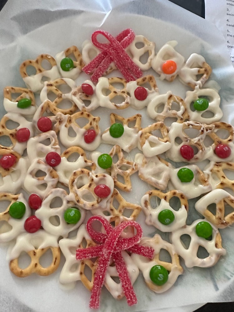 Another easy and fun festive idea is a pretzel wreath. Simply dip pretzels into melted white chocolate and decorate with colourful smarties. Not only do they look wonderfully Christmassy, but they’re also a hit with guests of all ages—perfect for parties or gifting! 🎄🍬