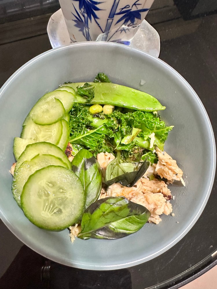 | Day 5 | Sardines, black beans, avocado, mix lettuce, cucumber | Black beans, eggs, mix lettuce or kale, cherry tomatoes |